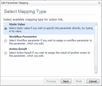 On the Select Mapping Type page, select Workflow Parameter. |
