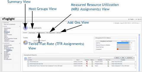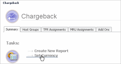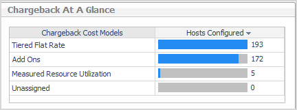 Chargeback At A Glance—this view provides a quick visual summary of which chargeback cost models are available and how many hosts have been configured for each model. |