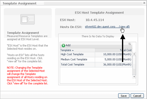 Measured Resource-Full Cost Recovery—measured resource utilization's full cost recovery can only be calculated for hosts of type VM. This report shows the CPU, memory, network, storage and total costs of the VMs under this service based on measured resource utilization's full cost recovery. It also reports the VMs associated add ons and their costs. The add ons cost calculations consider only 30 days (720 hours) a month. |