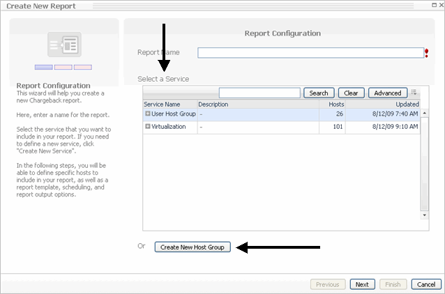 Create New Reports—provides a wizard that allows you to configure a report and select a host group (a group of computers) for a particular business unit. The reports are generated in PDF, Excel, and XML. (For more information, see Creating New Reports.) |