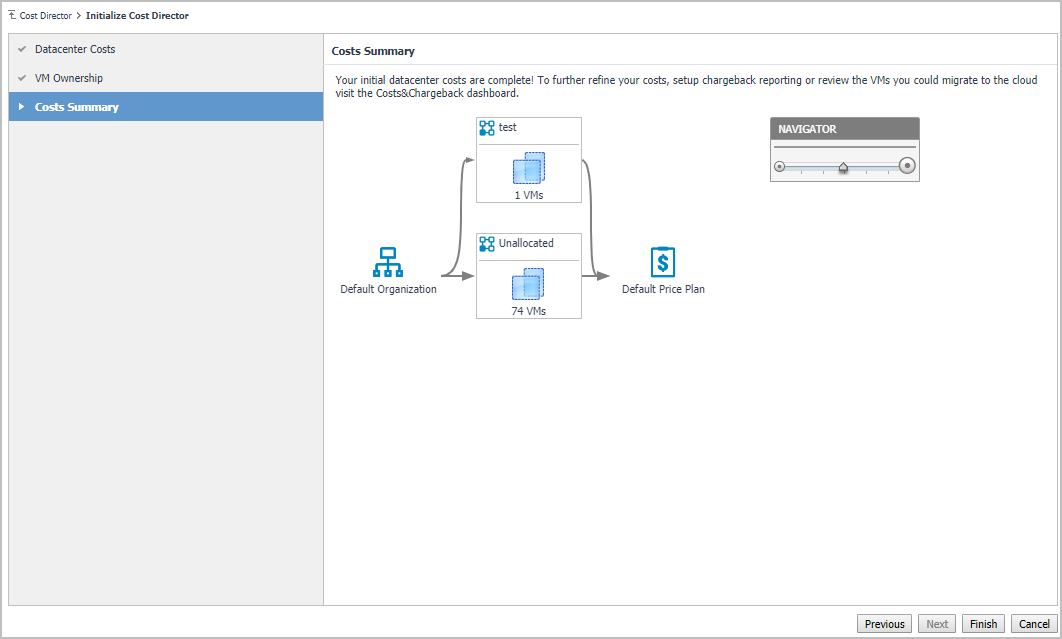 Datacenter Costs: This step creates the default cost structures for all VMs, which includes the following parts: