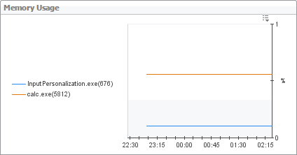 For each identified process, the Memory Usage chart displays the percentage of memory resources that are in use, during the selected time period.