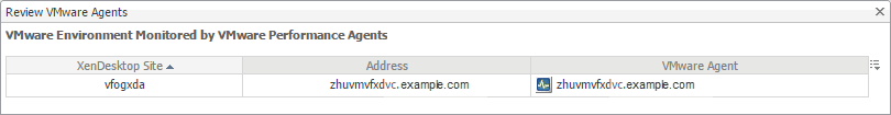 Review VMware Performance Agents: Review the list of monitored XenDesktop sites in the Review VMware Agents dialog box that appears when you click this link.