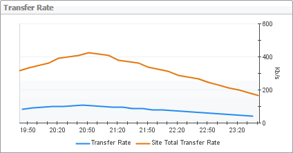 Displays the session’s WAN data transfer rates over the selected tile range. It also shows the average WAN data transfer rates for all sessions that belong to the same XenDesktop site.