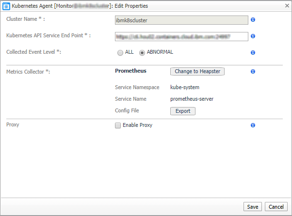 NOTE: If you are using your existing Prometheus as Metrics Collector, we will not help you to manage your Prometheus. Both the Service Namespace and Service Name can be updated in Kubernetes Agent Edit Properties wizard. |