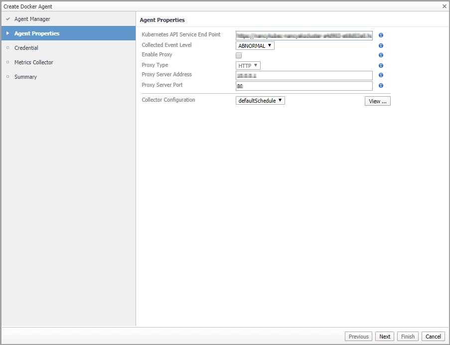Collector Configuration: Used to configure collection interval for inventory and metrics. You can change the collector intervals of defaultSchedule, however, this will affect all the Kubernetes Agents. Or you can create a new scheduler, configure the collector intervals, and then assign this scheduler to this agent.