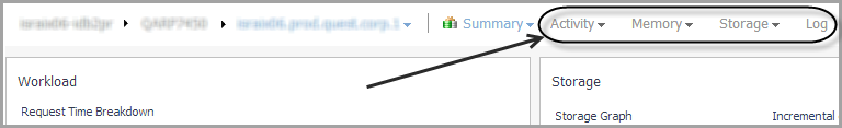 The Workload pane displays the session activity and CPU usage information for the selected partition. It is at the upper left of the Partition (History) home page.