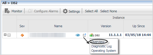 NOTE: The Version column does not display any information for DB2 instances running on Windows hosts.