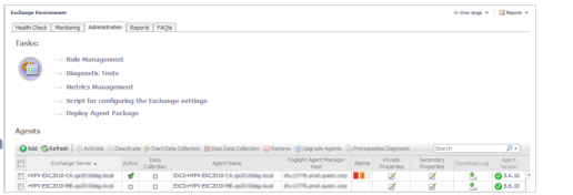 Deploy Agent Package: Deploy the Exchange agent package, create Exchange agent instances on one or more servers at a time, activate or deactivate Exchange agents, and start and stop collecting data.