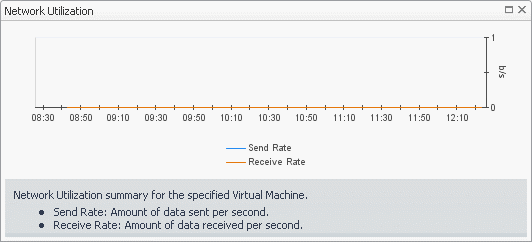 Network Utilization, Transfer Rate. The rate at which the selected virtual machine transfer data to and from the network during the selected time period.