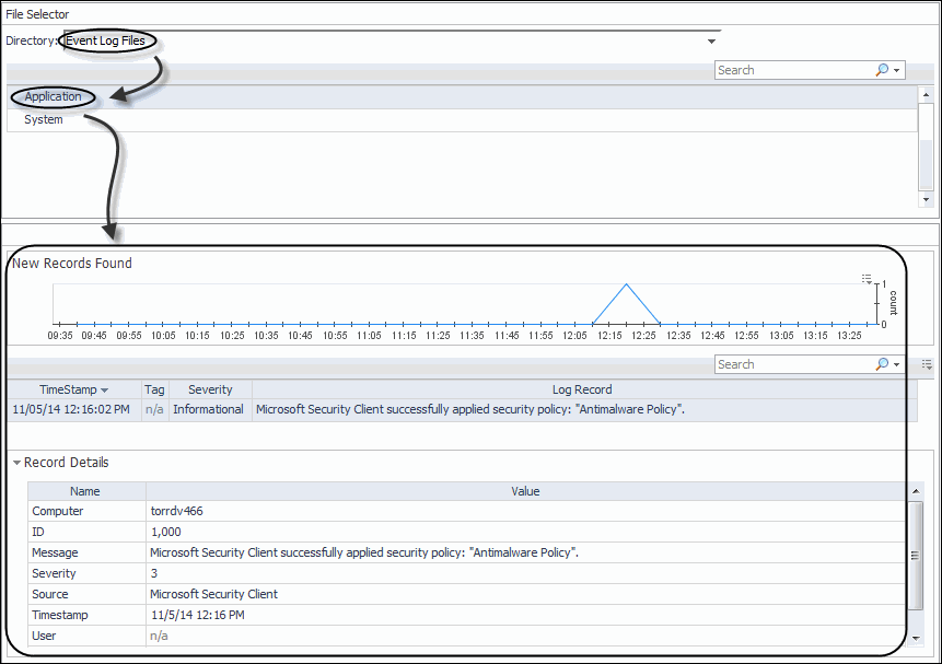 For Windows Event Logs, select Event Log Files, and choose the name of the Windows Event Log (for example, Application).