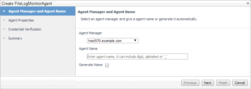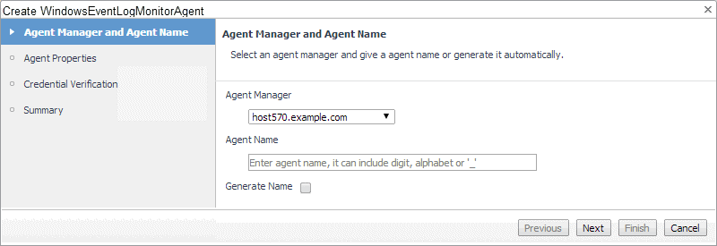 Specify the name you want to assign to this agent instance. In the Agent Name box, type the agent name. Optionally, select the Generate Name check box to have the wizard generate the name automatically.