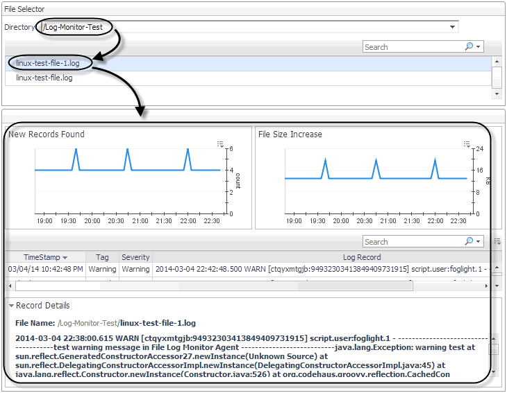 Start by choosing the host containing the log files whose records you want to review, using the File Selector view. From here, for file logs, you can select the directory and the log file name.