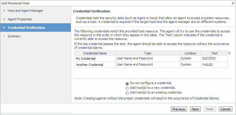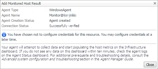If the operation is successful, the Add Monitored Host dialog box appears. |