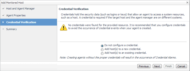 On the Summary page, review the information provided about the hosts you want to monitor and their credentials. |