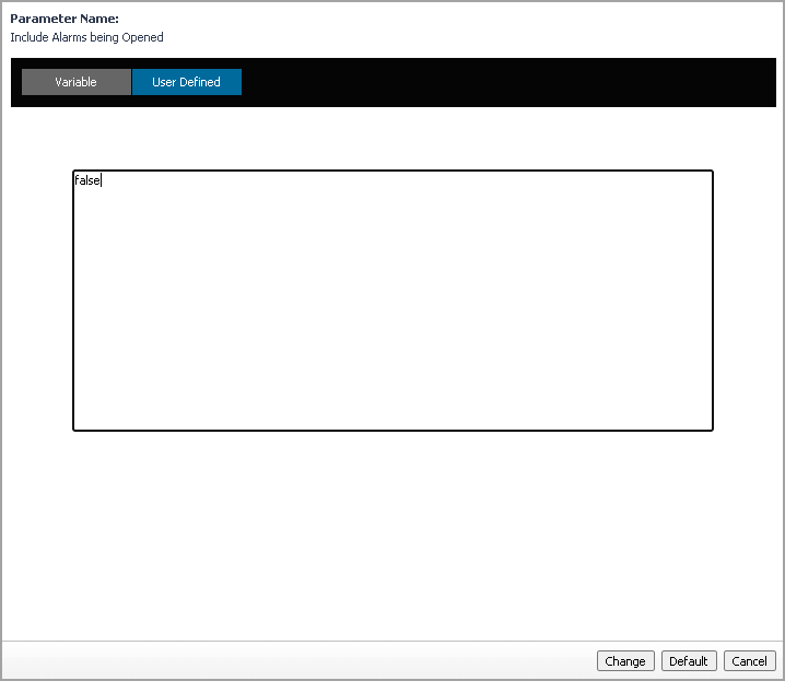 For alarm system event, click Default and select alarm_event from the Rule/System Variables.