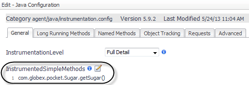 On the General tab of the Edit dialog box, click Edit beside InstrumentedSimpleMethods.