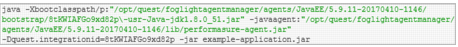 Linux: Assume the Java EE agent directory is “/opt/quest/foglightagentmanager/agents/JavaEE/5.9.11-20170410-1146”, the “QUEST_INTEGRATIONID” value is “8tKWIAFGo9xd82p”, and the target Spring Boot application jar is “example-application.jar”. Then update the original command to the following: