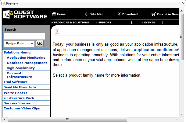 To drill down to the hit details, click Hit Detail View in the Hits column. You can open the view in the current browser window or a new window.