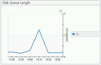 The Disk Queue Length chart displays the disk activity for each logical disk.
