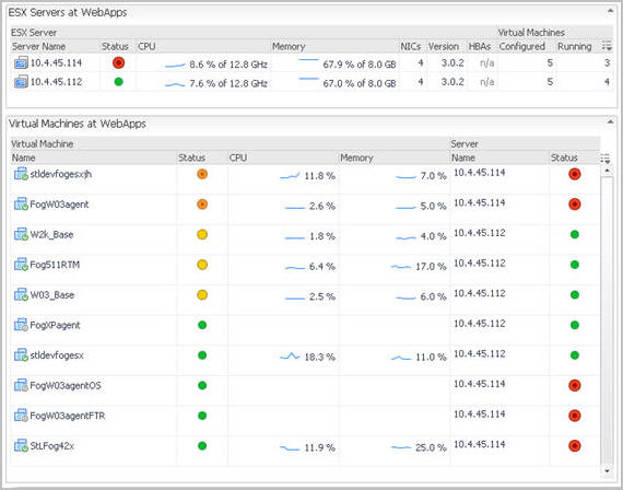If, however, you select a collection of ESX® Hosts from the Virtual Infrastructure view and you open the Summary tab, an informative graph appears in place of a Utilizations view. Selecting a collection of objects in the Virtual Infrastructure view always shows a composite view displaying information about all object instances contained in that collection.