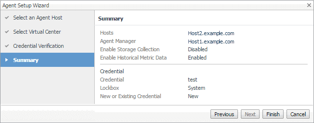 If you want to import historical data, select the Enable Historical Metric Data check box. This data is not immediately available as it takes some time to collect it. This process can import data collected over 30 days or less, depending on the amount of data available in the Virtual Center. Selecting this option allows you to explore VMware metrics as soon as the data is imported, instead for waiting for the agent to collect some data from the Virtual Center. |