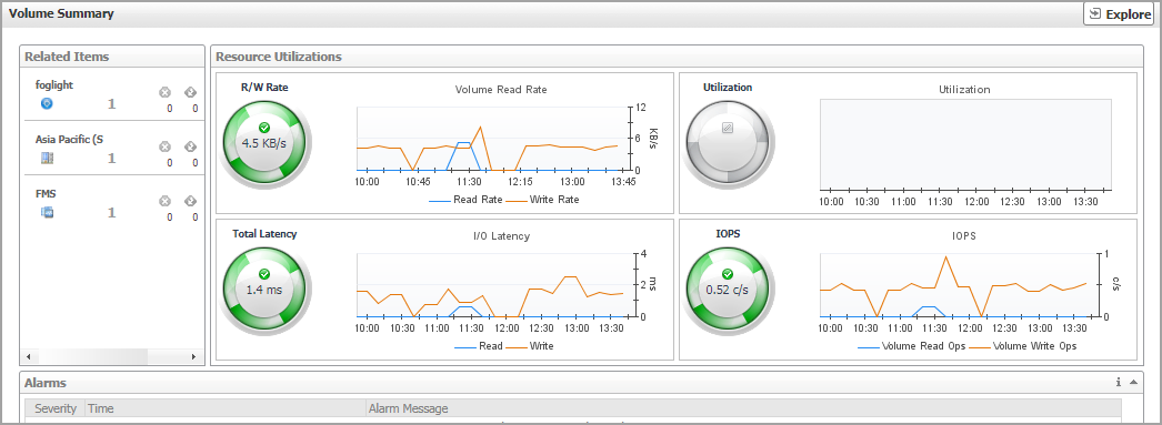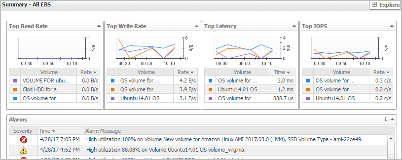 Shows the resource utilization of the selected EBS instance, broken down into four simple views. | |||