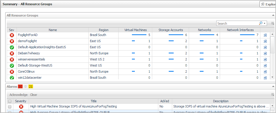 | Shows the numbers and states of the selected resource group on the monitored Azure environment. | |||