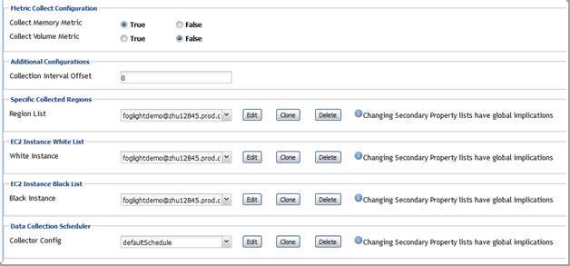 Select True for Collect Memory Metric and Collect Volume Metric, and then specify a value for Collection Interval Offset. |