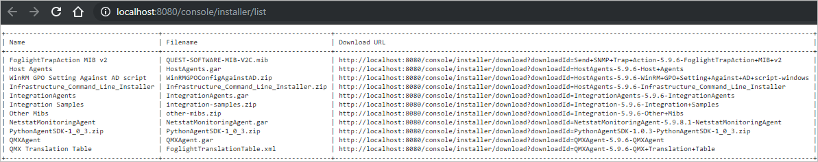 If you do not have access to the browser interface and want to use a direct URL to download agent components, you can do that either by typing the URL into the web browser address field, or use it in combination with a command-line utility such as wget.