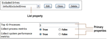 There are two basic types of agent properties in Foglight: simple (primary) properties and list-based (secondary) properties. Primary properties are specific to the agent type or an instance of that type.