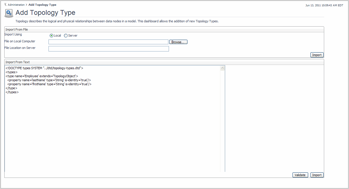 On the navigation panel, under Dashboards, click Administration > Data > Add Topology Type.
