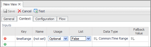 For example, a page is designed to display information for a selected host. When you click a link, the host object is passed to a detail page. The detail page uses that information as its initial context settings. The Context tab is where you set up the list of required context data. Using a required Context setting means that the page or view is dependent for its data on that context value being available.