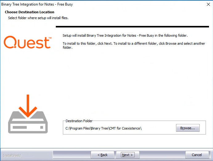 2. On the Choose Destination Location screen, accept the default destination location or browse to the desired location; click Next: