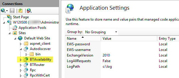 2. Refresh IIS (press <F5>) and be sure that the BTAvailability virtual application has been added: