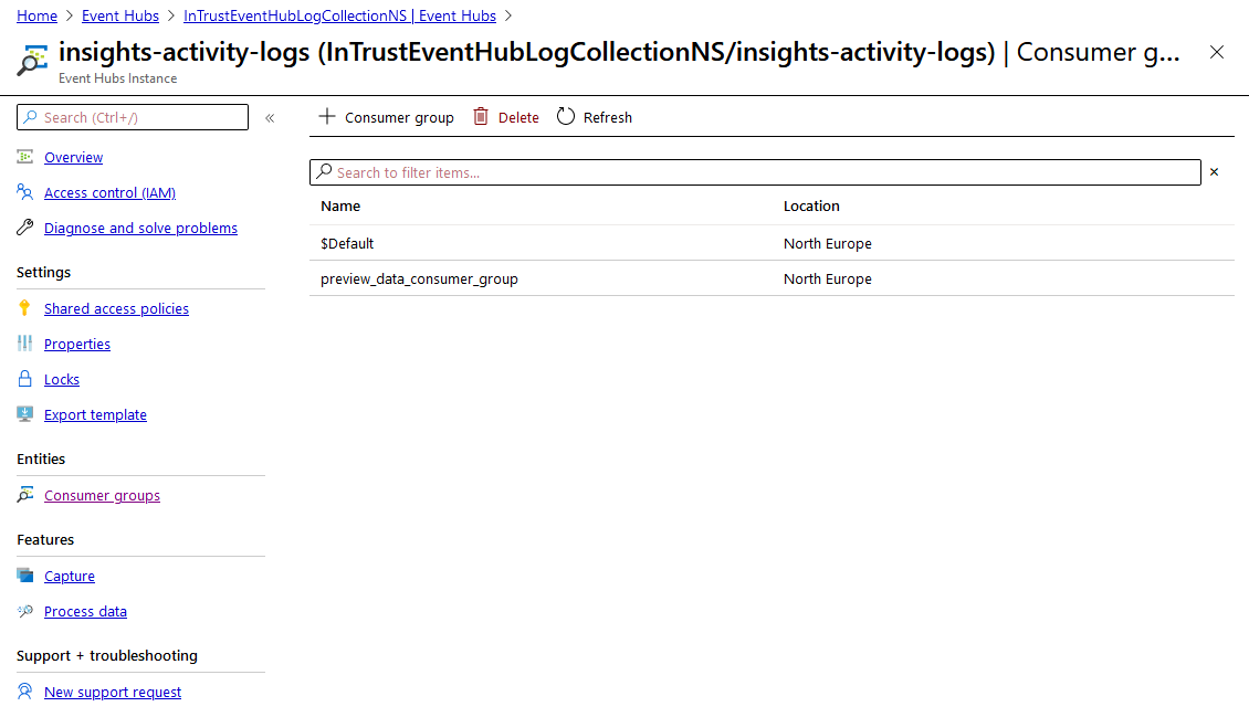 4. In the menu pane, switch to Consumer groups (under Entities).