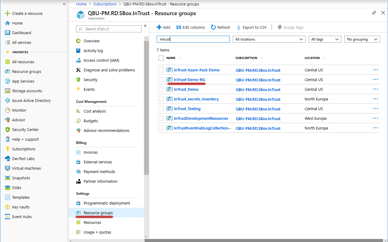 For quick access to all the necessary configuration data, make sure the Favorites list on the Azure portal contains the followings items: