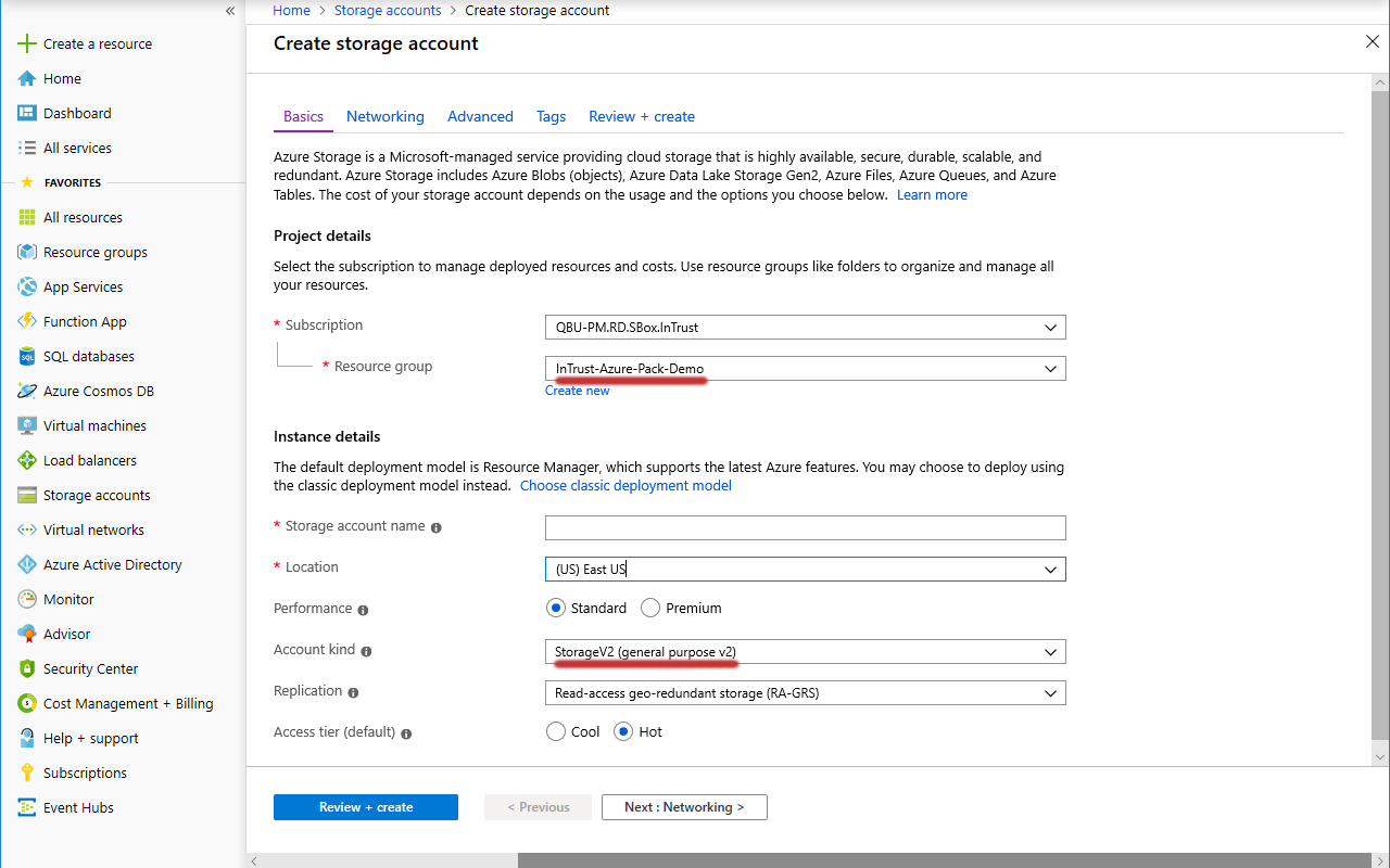 • For event hub auditing, it is sufficient to use a kind that supports only blob storage.