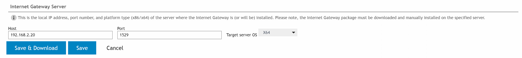Once the Internet Gateway’s internally accessible IP/Port is configured, click the Save & Download button. You will be directed to download and install the Gateway via an installation wizard.