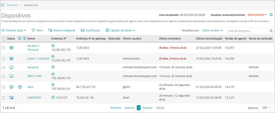 Gerencie dispositivos, software, processos, serviços, verificações e outros itens da rede. Consulte: