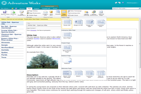 Feel free to experiment with checking the page in and out, versioning it, scheduling it’s release or submitting it for approval. These are all powerful features of the SharePoint publishing templates, but you actually do not need to use them for the task at hand.