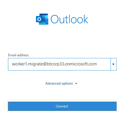 Enter the address of the account the would be used for the worker migrations and connect to Office 365