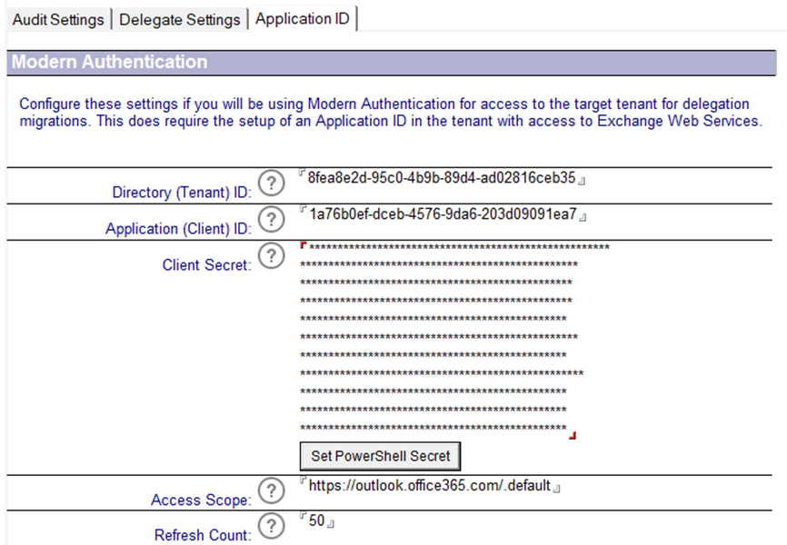 The Refresh Count can be left at the default ‘50’ unless there are delays during the delegation migration and there are authentication errors. If this does occur, then the number can be reduced. This should not exceed ‘60’ as this is the maximum time that an MSAL token is valid for.