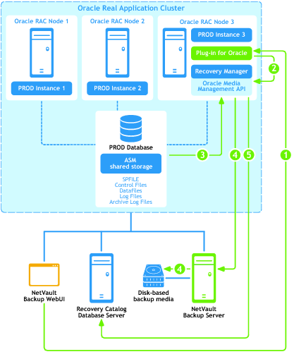 In a multi-instance or RAC environment, one RAC Database-Based Plug‑in for Oracle license lets you back up and recover a single database within the single RAC environment no matter the number of instances or nodes that reside in the RAC environment. If you have five databases residing in the single RAC environment, you must purchase five RAC Database-Based Plug‑in for Oracle licenses, and so on.