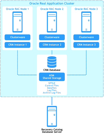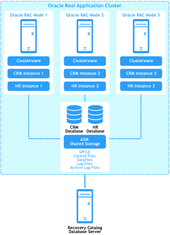 Separate Recovery Catalog Server – Dell strongly recommends that you store the RMAN repository in a Recovery Catalog database on a server outside the Oracle RAC environment. For more information, see Creating the RMAN repository.