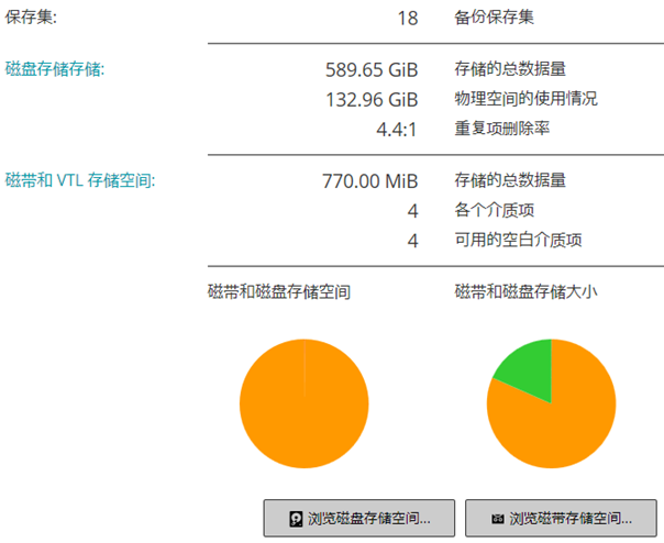 介质使用情况:饼图显示多个保存集使用的存储数量。