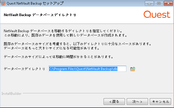 NetVault Backupのデフォルトのデータベース・ディレクトリ・パスは、既存のデータベース・パスと同じです。