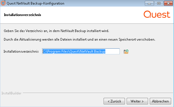 Der Standardinstallationspfad für NetVault Backup ist der gleiche wie Ihr bestehender Installationspfad.