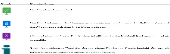 Die folgende Tabelle enthält eine kurze Beschreibung der Client Symbole.
