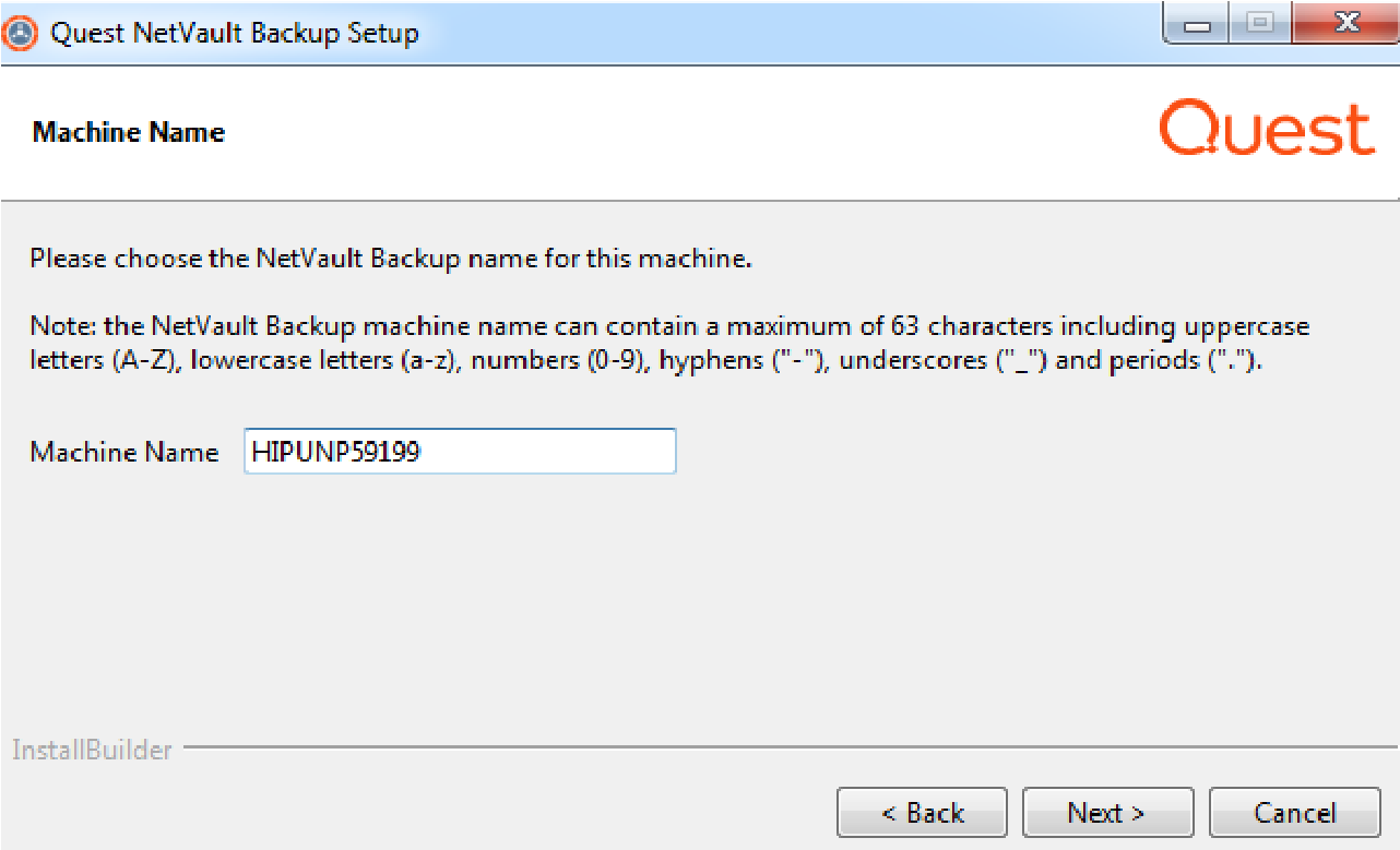 NetVault Backup verwendet standardmäßig den vom Betriebssystem zugewiesenen Computernamen. Weitere Informationen zu Computernamen finden Sie unter. Festlegen NetVault Backups namens und-Kennworts.